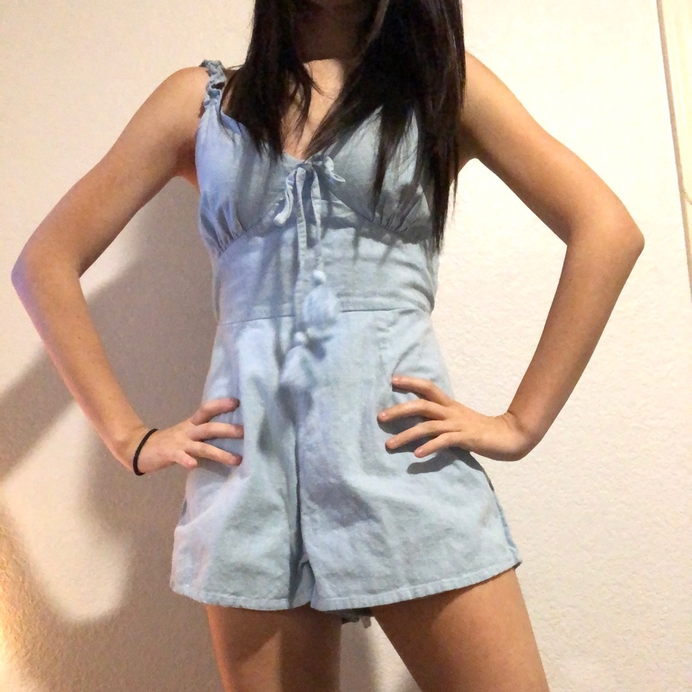 baby blue romper - great quality - thick material - super comfy - fits loose - scrunchy material back - worn twice