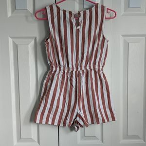 striped romper. with pockets and buttons