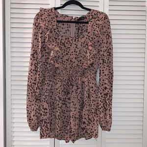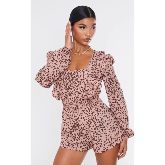 PRETTYLITTLETHING- dusty pink dalmatian print square neck frill romper