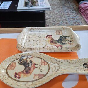 rooster spoon rest and tray set by Keller Charles 100percent melamine great condition