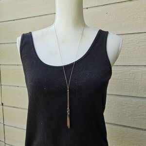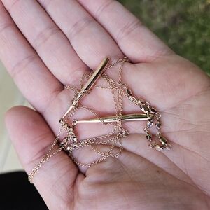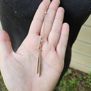 Rose gold colored chain lariat necklace. In good used condition with no known flaws. No branding.