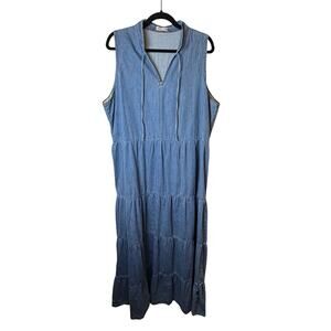 roseLILY Chambray Tiered Maxi Dress 2XL Sleeveless Ruffle Hem Boho Cottagecore