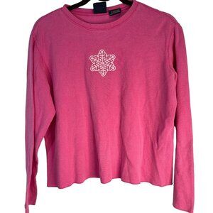 route 66 long sleeve shirt snow flake pink stretch cotton blend size x READ