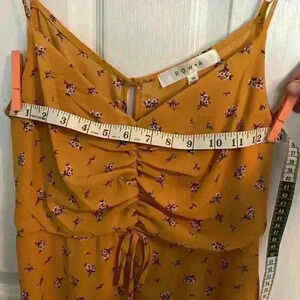 Adjustable spaghetti straps. Approximate measurements in photos. Worn once; please review photos closely for undesired defects.