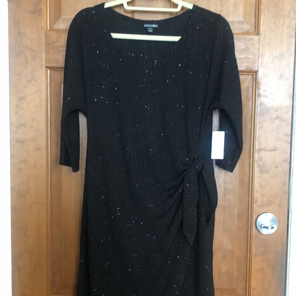 Shimmery LBD by roe and ali. No wrinkle, easy care fabric. Side Tie fits any body type.