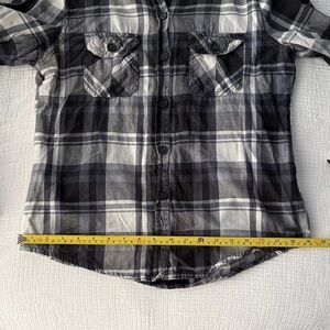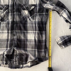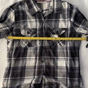 vintage roxy black and white plaid button down. perfect to throw on for this chilly fall nights!