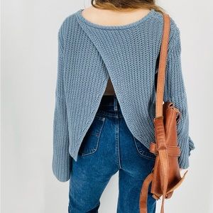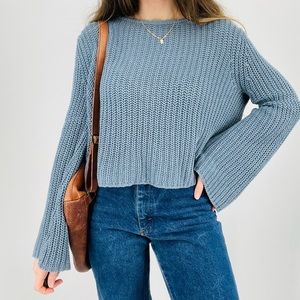 roxy sky blue boho beachy open back knit sweater flowy sleeve size s