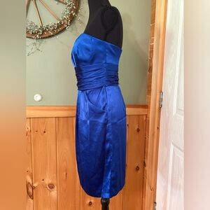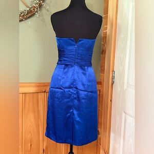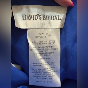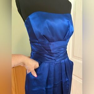 royal blue David’s bridal strapless dress with pockets size 2