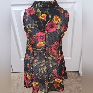 roz & Ali Semi Sheer Floral Sleeveless Tunic Size S