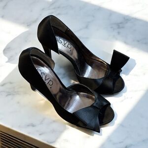 rsvp Black Satin Open-Toe Pumps Heels with Bow Size 7