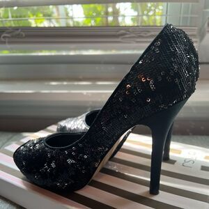 rsvp Black Sequins Peep Toe Pumps Size 6 4.5” Heel