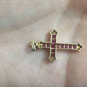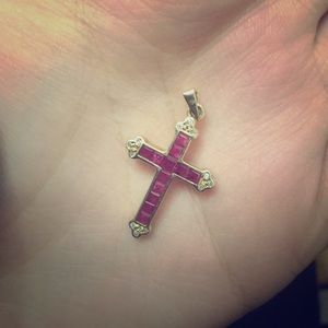 ruby & diamond cross pendant neckless in 14k yellow gold