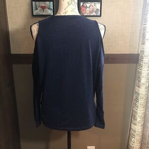 Rue 21 blue cold shoulder blouse size medium 76% rayon 21% polyester 3% spandex length 22’ sleeve 16’ A321