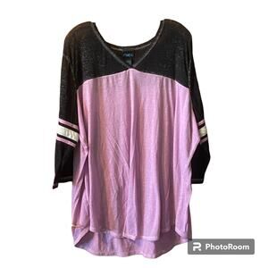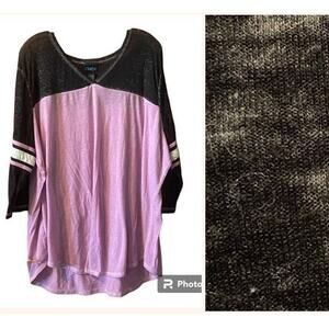 rue Plus Top 2x Jersey Burn Out 3/4 Sleeve V Neck Multicolor Cotton Blend
