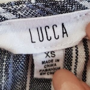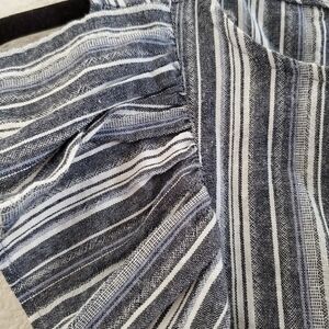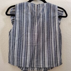 Short tank with ruffled front and single button snap in back.