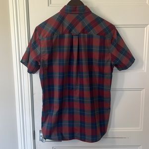 RVCA short sleeved button down. regular fit. red and blue plaid.