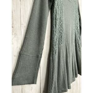 rxb Green Long Sleeve Crew Neck Lace Thermal Flowy Sweater Medium