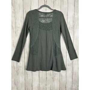 rxb Green Long Sleeve Crew Neck Lace Thermal Flowy Sweater Medium