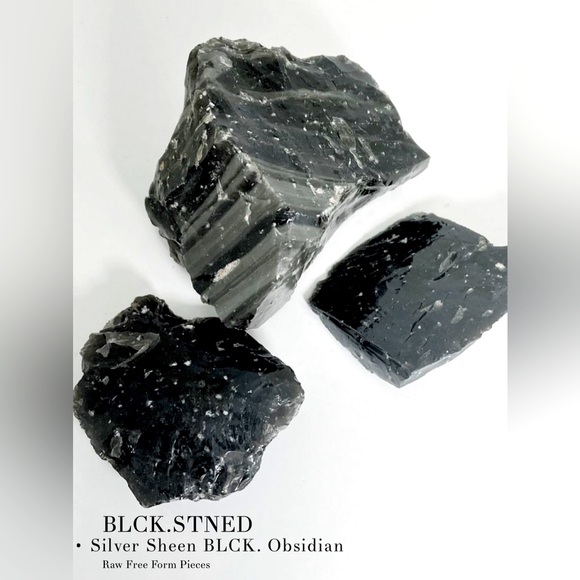 - This listing is for a lot of 3 pieces of Raw Silver Sheen Black Obsidian. This is a mixtures of pieces listing, so you will be purchasing the exact pieces in the photos & as described.