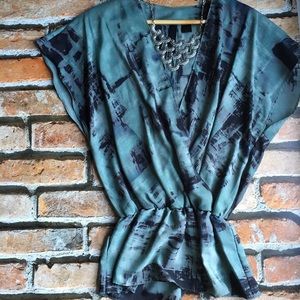 π sage brushstrokes blouse, sz XS, S, M, 0, 2, 4