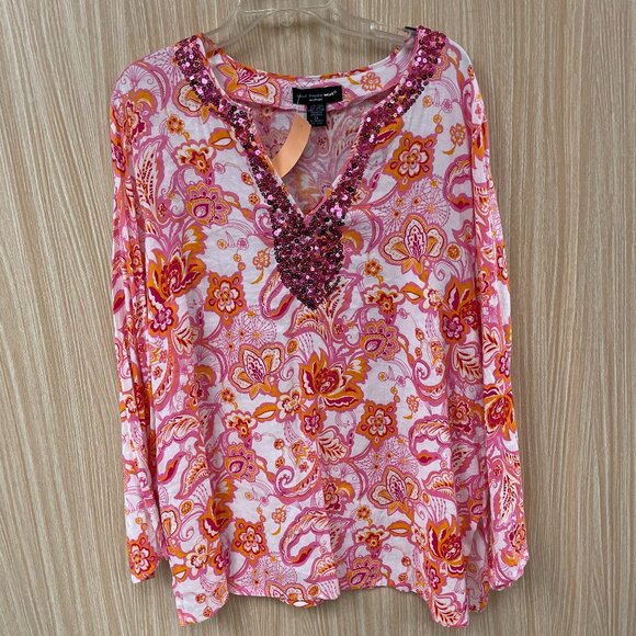 saint tropez west pink floral sequined top size 2X
