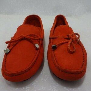 saks Fifth Avenue Women's Size 7B Moccasin Orange Suede Slip On Flat Shoes