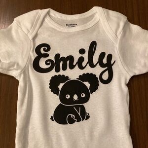Adorable one-piece bodysuit customized with a koala Bear and the name Emily