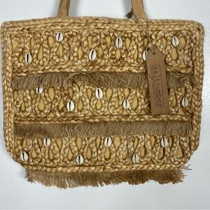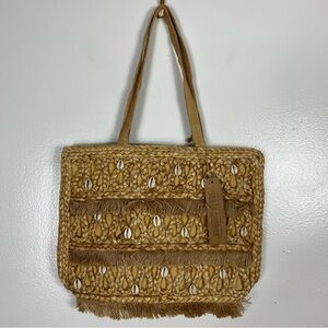 Natural jute is hand-braided with genuine, cruelty free seashells and a touch of bohemian fringe. Sturdy enough for your laptop and everyday use as a tote, shopper, or beach bag.