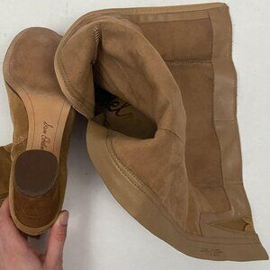 sam edelman camellia chestnut tan suede knee high heeled boots