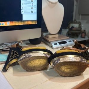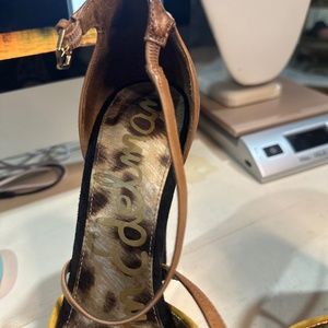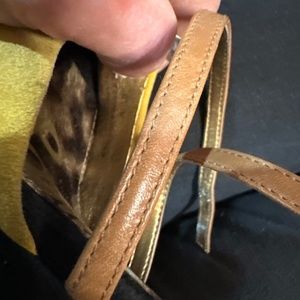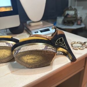 sam edelman size 6.5 gold suede and gold or brown leather and black heel 5” heel and snake at bottom theses shoes cost 500 new