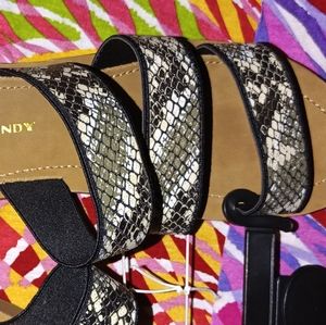 Rock & Candy three-strap snake print sandals