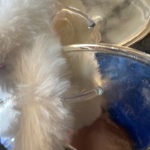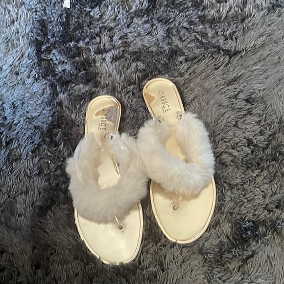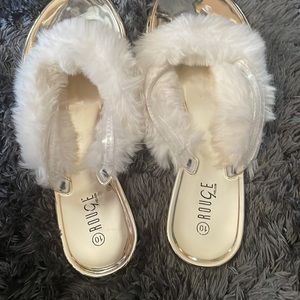 Women’s size 10 golden white sandals with faux around the top