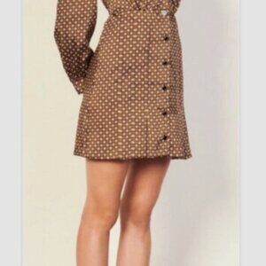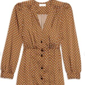 sandro Women's Paris Button Front Printed Twill Mini Dress Brown Size 38/6 00036