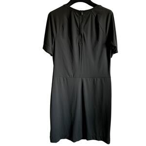 Additional Details: 1/4 zip closure in back, short sleeve with split hem, 2 faux pockets, exposed stitching down front, knee length. MSRP- $165