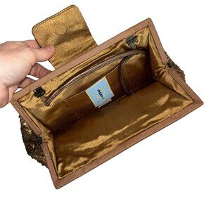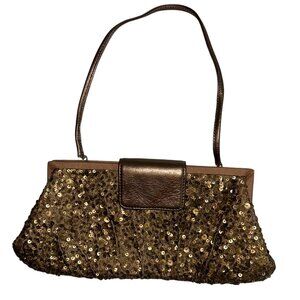 santi HOLIDAY brushed gold all sequins clutch hand bag purse