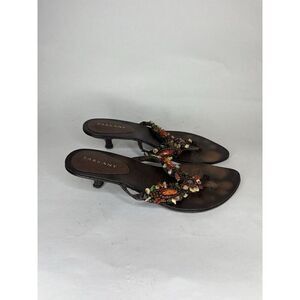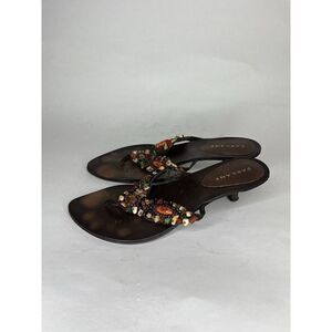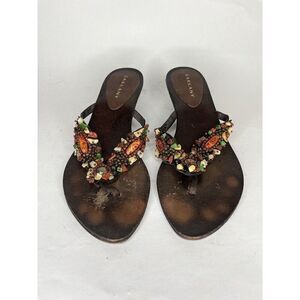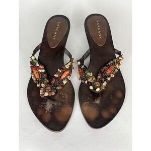 sarkany Sandals Women Size 37 US 7 Brown Leather Multi Color Stones
