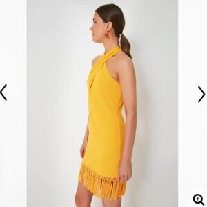 saylor leyna orange crossed halter neck keyhole fringe mini dress size small new