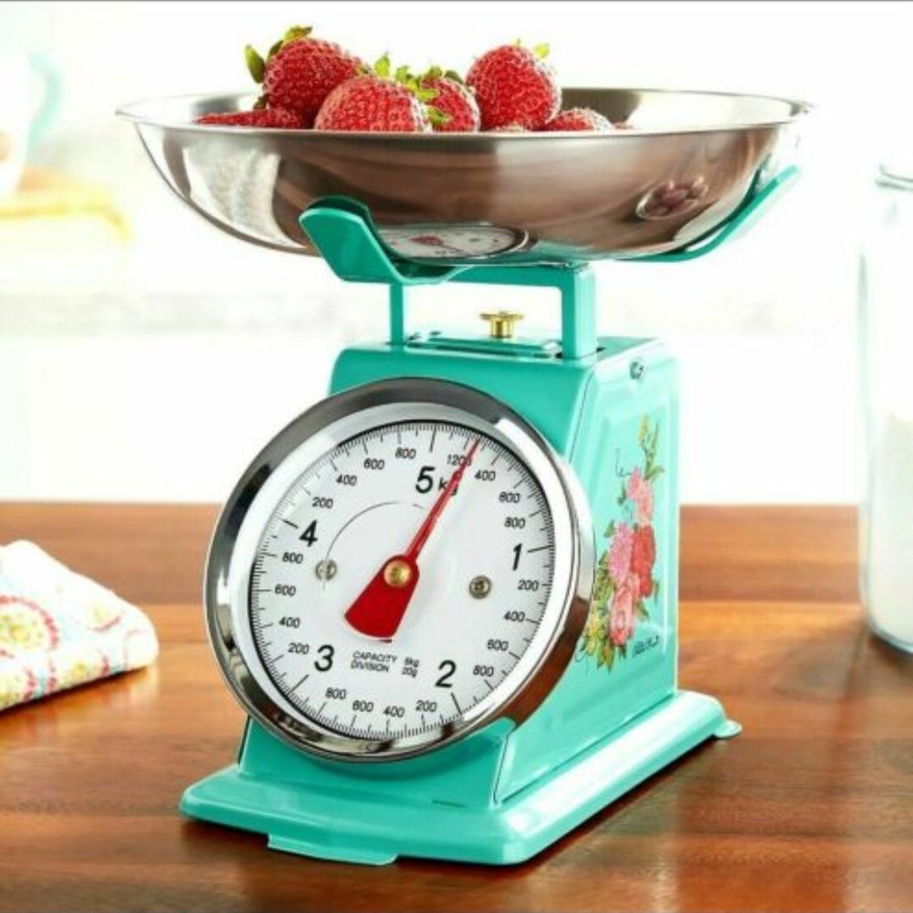 Get accurate measurements for your cooking and baking with The Pioneer Woman Sweet Rose Mini Analog Scale. This mini scale features a large display dial. It has graduation units for pounds, ounces, kilograms and grams. The stainless-steel weighing bowl is removable for easy cleanup. Featuring Ree’s signature floral design, this scale adds a pop of color. The analog style adds vintage flair to your kitchen and will look great on your sitting on your kitchen counter. Mix and match with other pieces from The Pioneer Woman collection. Add some vintage charm to your home with The Pioneer Woman Sweet Rose Mini Analog Scale.