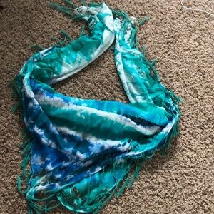 Tye Dye with fringe. Can be tied to make infinity scarf