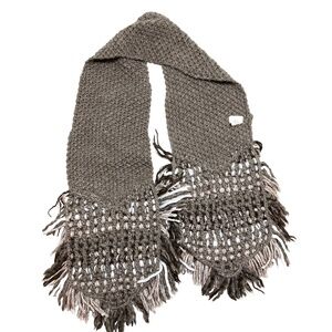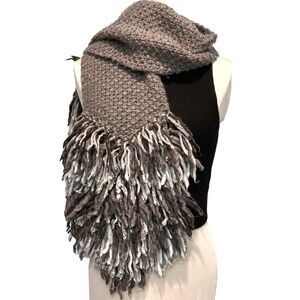 scarf winter 1937 Accessories tan bulky knit fringe warm statement piece
