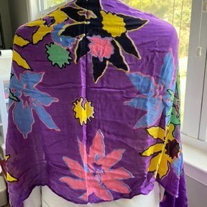 purple w/printed flowers scarf/shawl