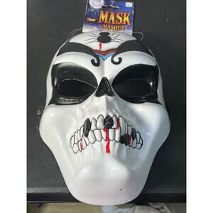 This Scorpion Black Widow Mask from the Forum Novelties category is perfect for Halloween or any costume party. The mask features a unique design with a black and white color scheme that is sure to make a statement. The brand of the mask is Forum and it is made for those who love to accessorize their costumes. The mask is perfect for those who want to add a touch of mystery and intrigue to their outfit. It is made for those who love to explore the darker side of human nature. The mask is perfect for those who want to channel their inner rockstar and make a bold statement. it still has tags but it has marks and for being in a box.