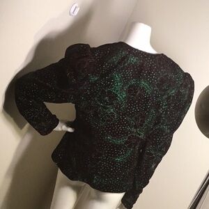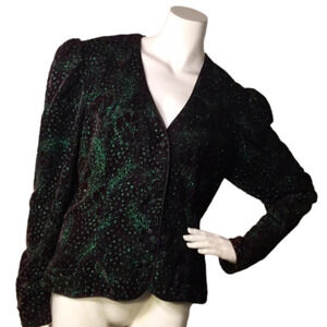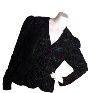 Elegant green glitter in a velvet v neck long sleeves jacket.