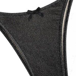 seamoly Lurex Glitter Sparkly Lace Trim Bowknot Decor Tie Side Tankini Set,Black