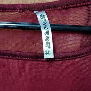 see-through top scoop neck maroon T-shirt with zipper pocket LISTING#00187