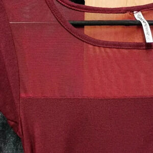 see-through top scoop neck maroon T-shirt with zipper pocket