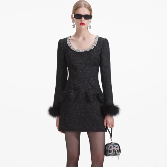 self-portrait Black Textured Metallic Mini Dress Size:US8 - MSRP $670 - NWT