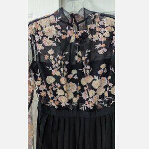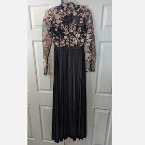 self-portrait Midnight Floral Mesh Maxi Dress w/ Pleated Skirt US 4 / UK 8 NWT