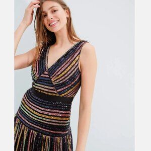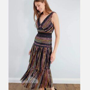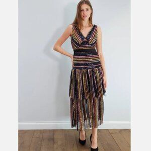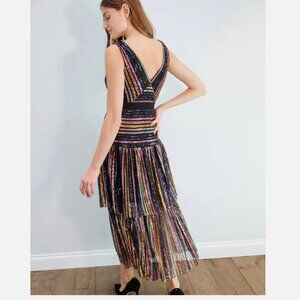 self-portrait Stripe Sequin Sleeveless Midi Dress US 0 / UK 4 New With Tags