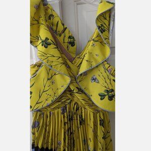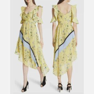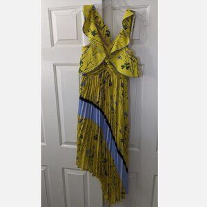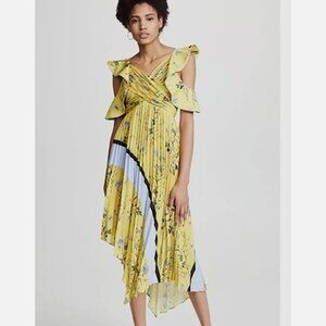 self-portrait Yellow Floral Asymmetric Pleated Cross Dress US 0 / UK 4 NWT